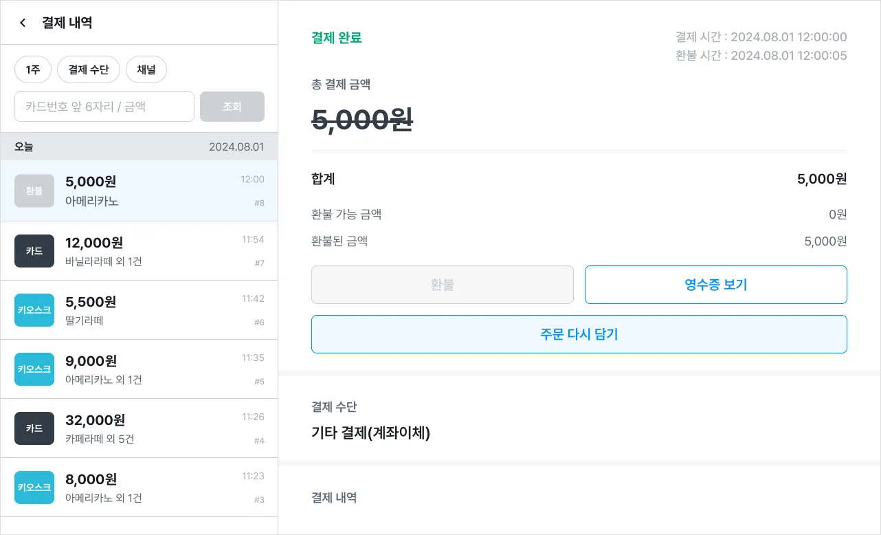 결제 방법을 상세하게 구분하고 관리할 수 있어요.