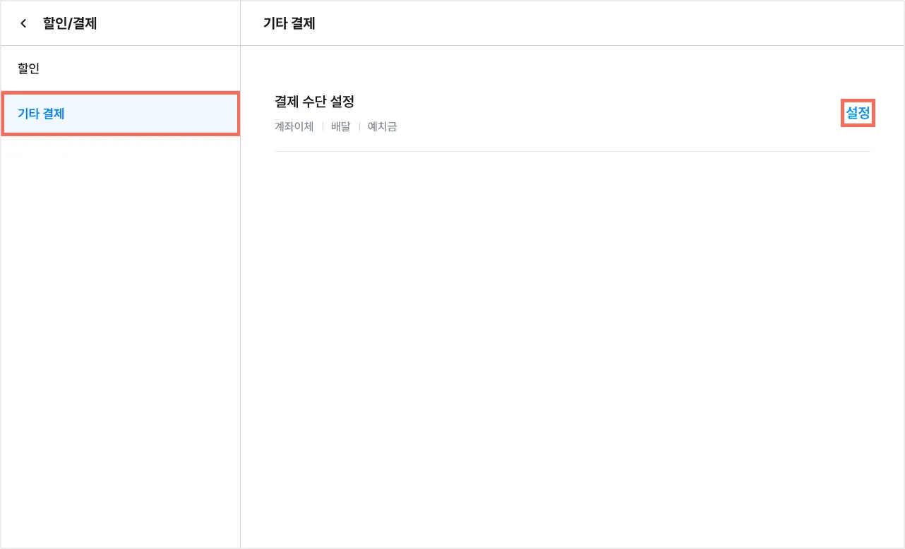 3) [기타 결제] 내 결제 수단 설정의 [설정]을 눌러주세요.