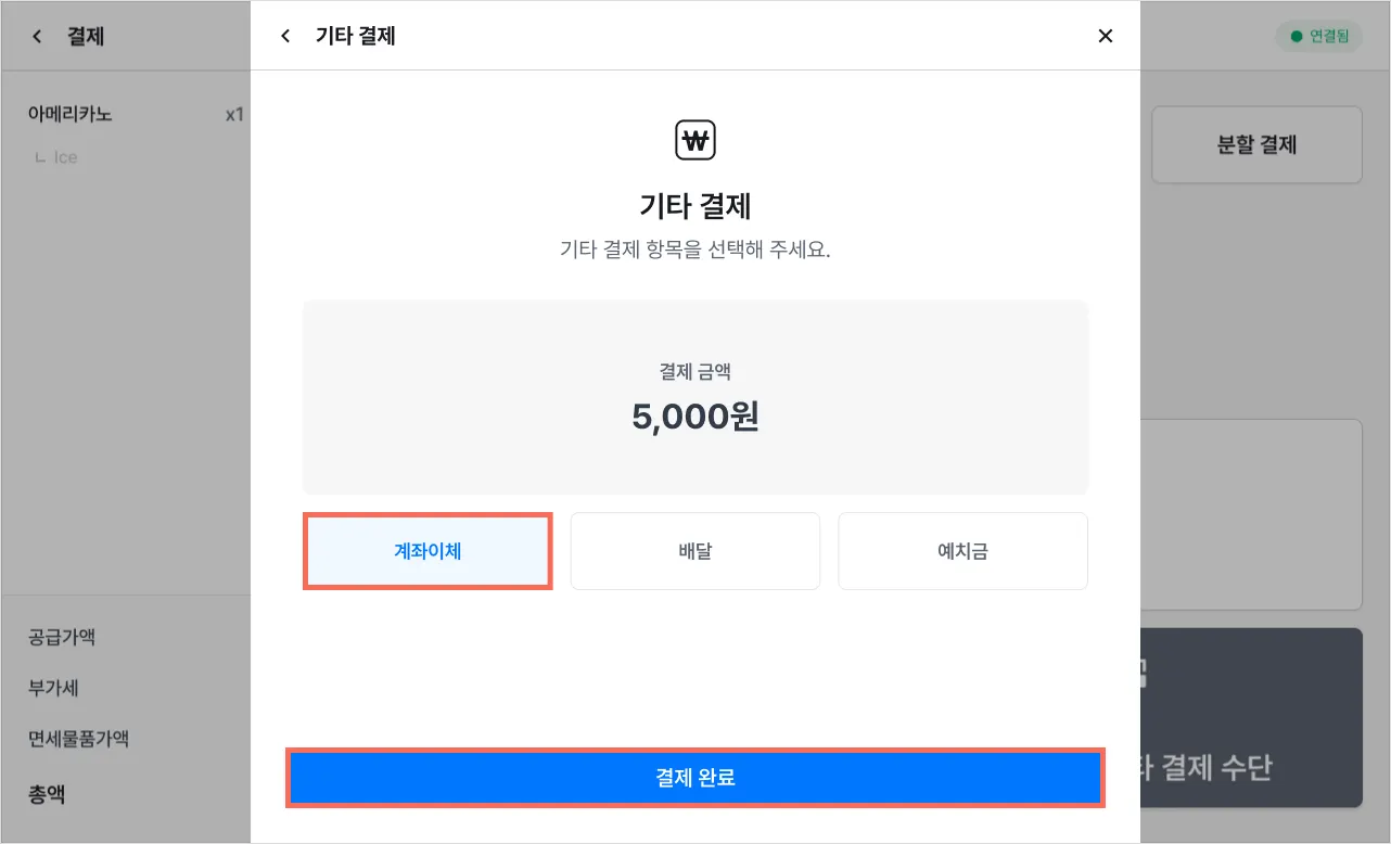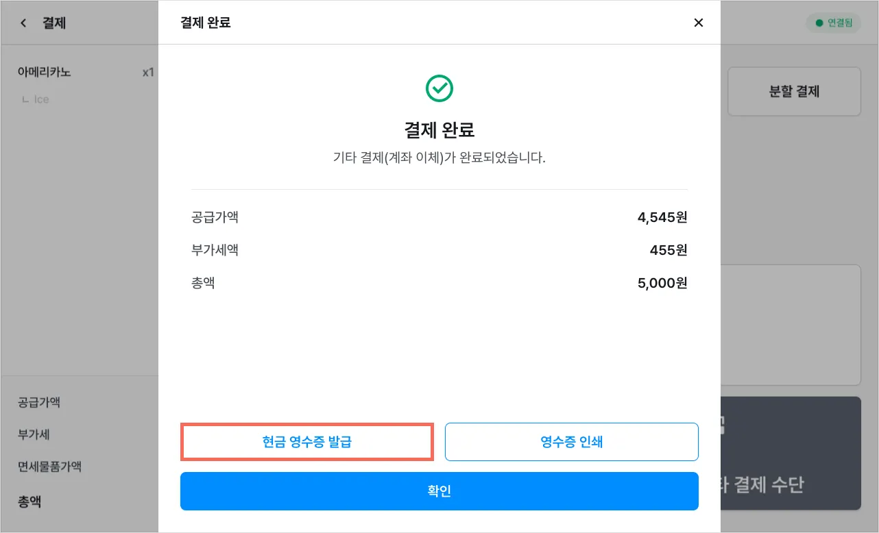 현금 영수증 발행은 기타 결제를 완료한 후 진행이 가능합니다.