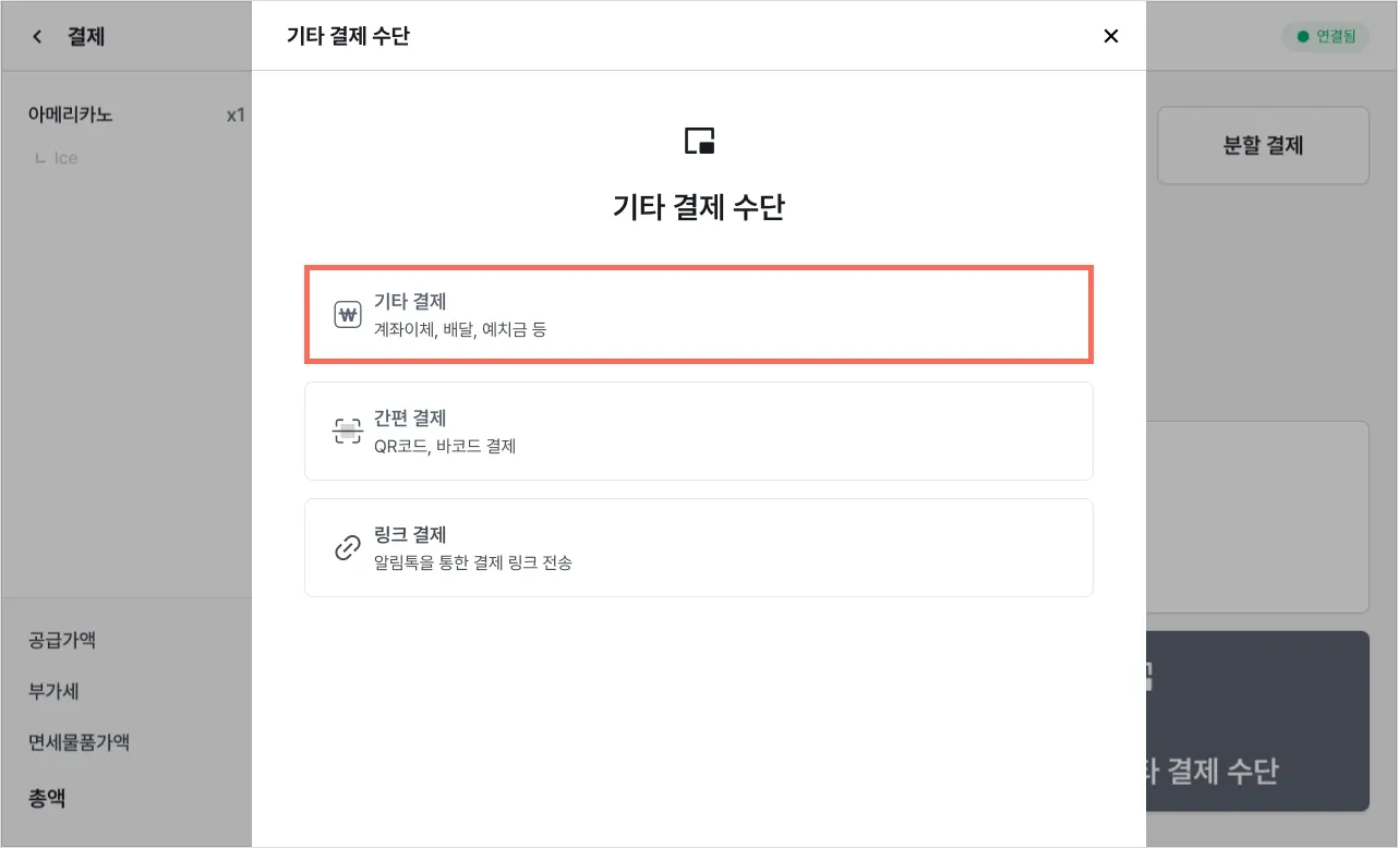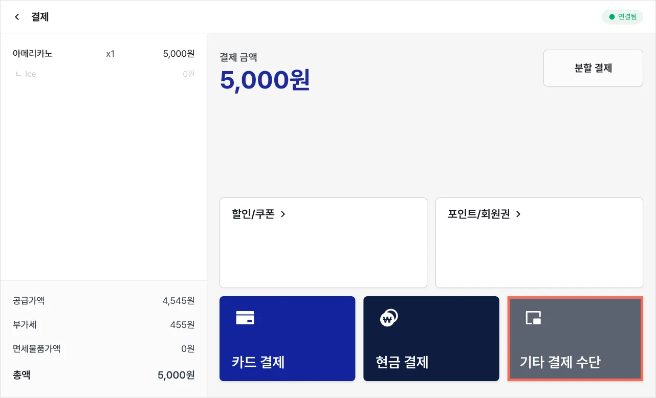 1) 결제 화면에서 [기타 결제 수단]을 눌러주세요.