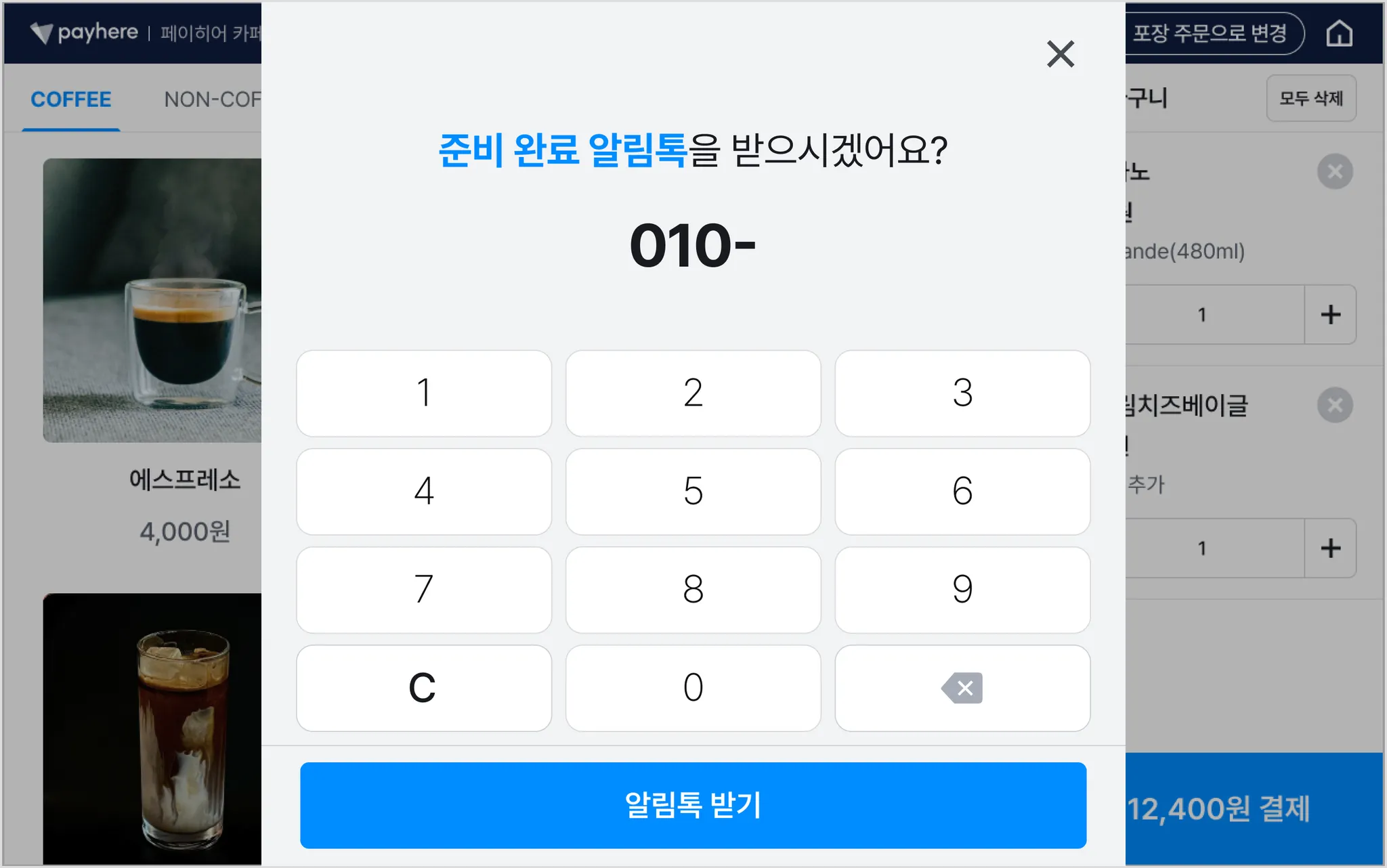 2) 주문 준비 완료 알림톡을 받을 휴대폰 번호를 입력해 주세요.