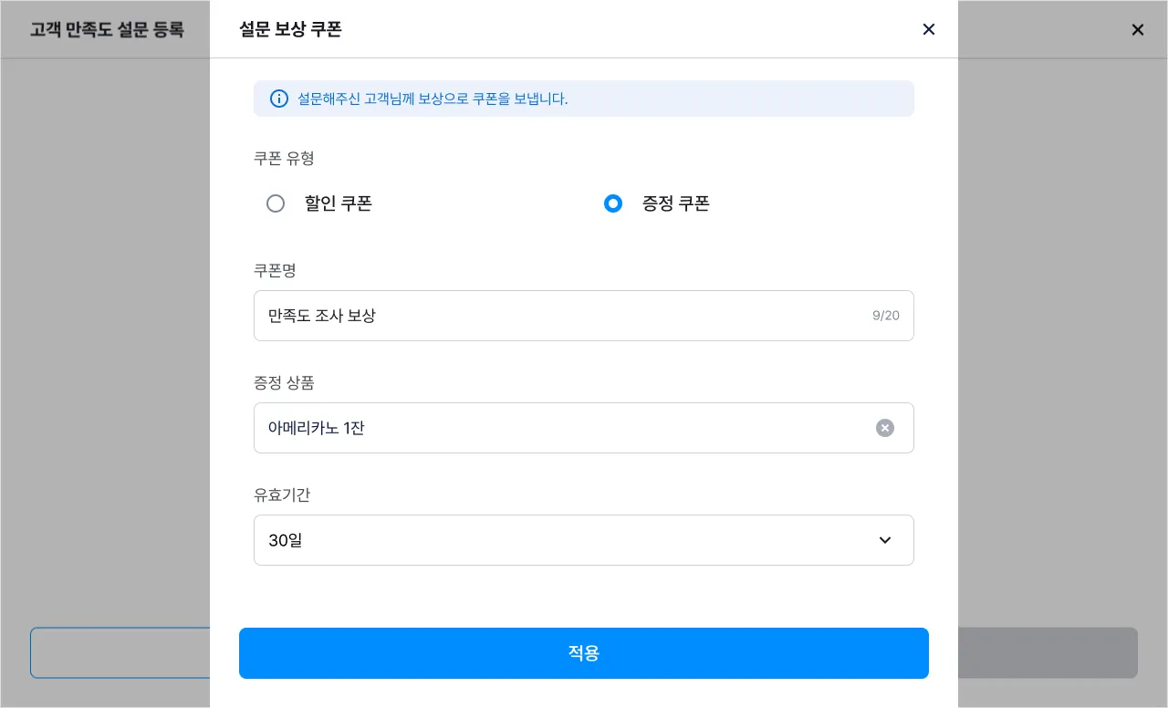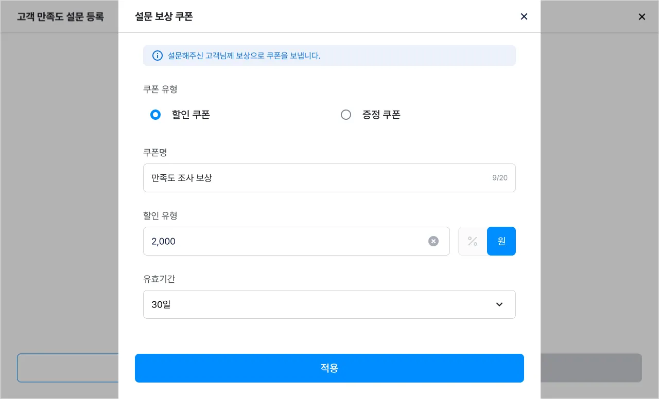 8) 설문 보상 쿠폰이 추가된 것을 확인할 수 있어요.