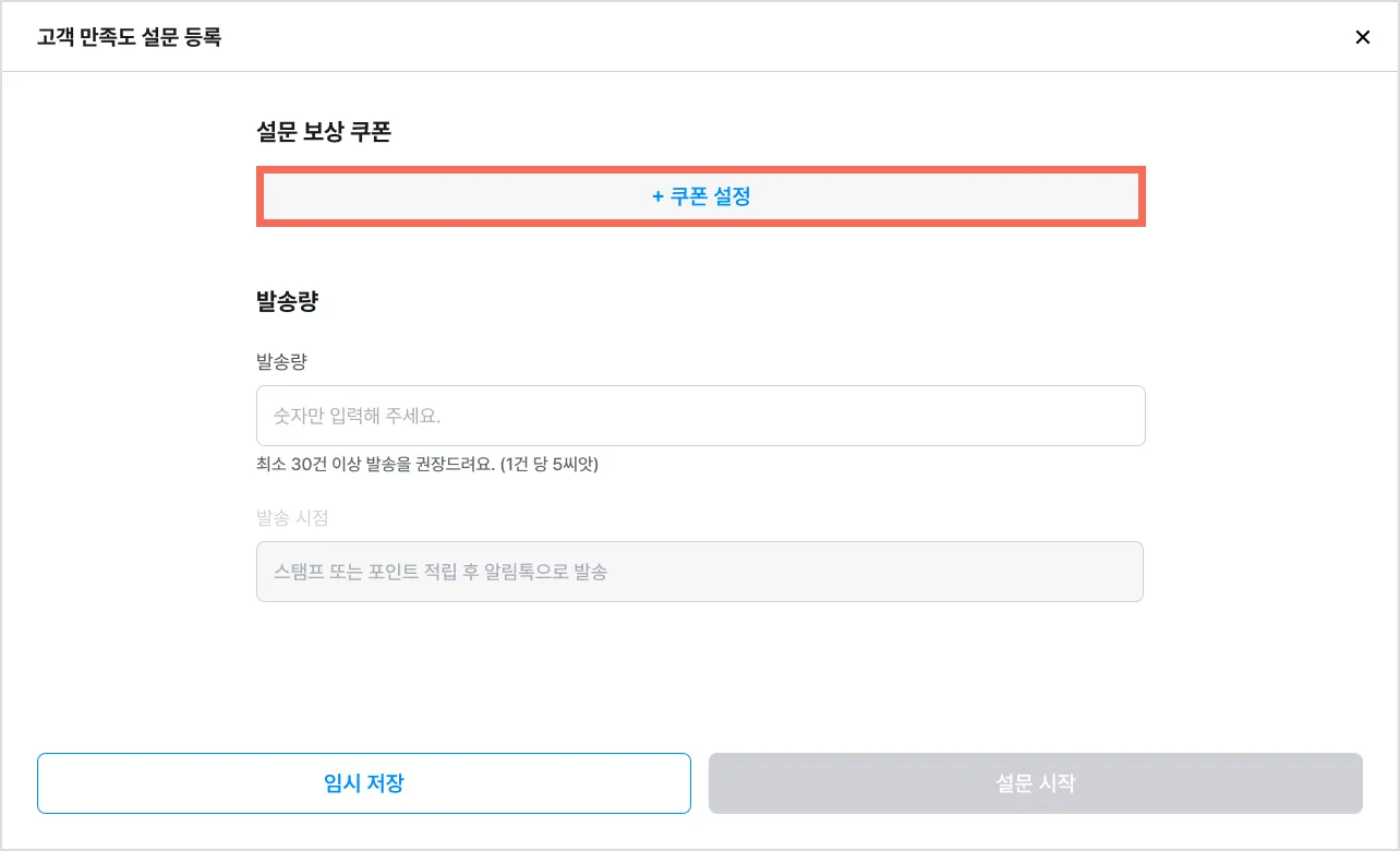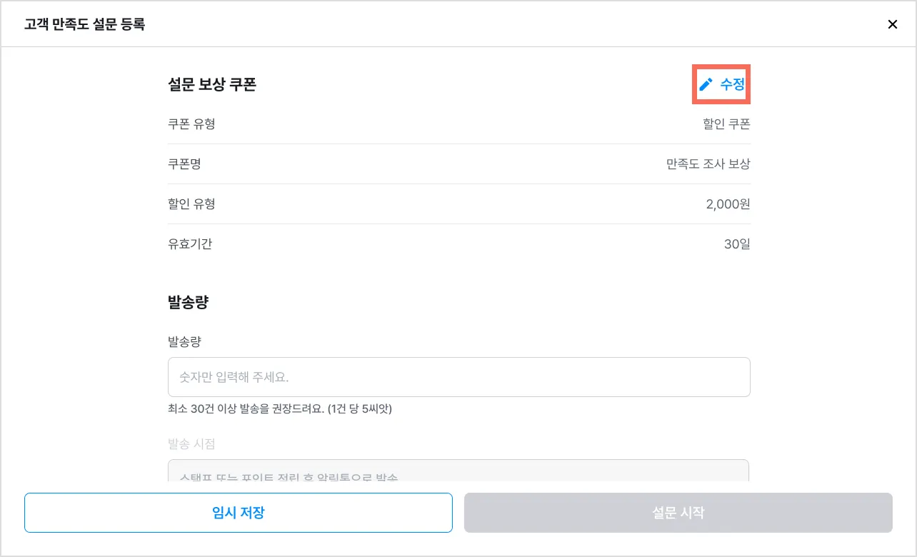 10) 발송량을 입력한 후 [설문 시작]을 눌러주세요.