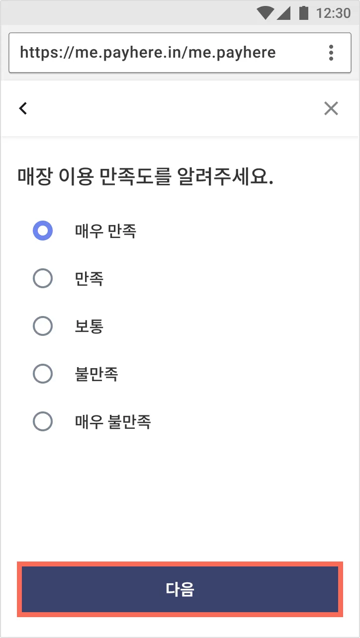 만족도 점수: 매우 만족부터 매우 불만족까지 5개의 선택지로 제공돼요.