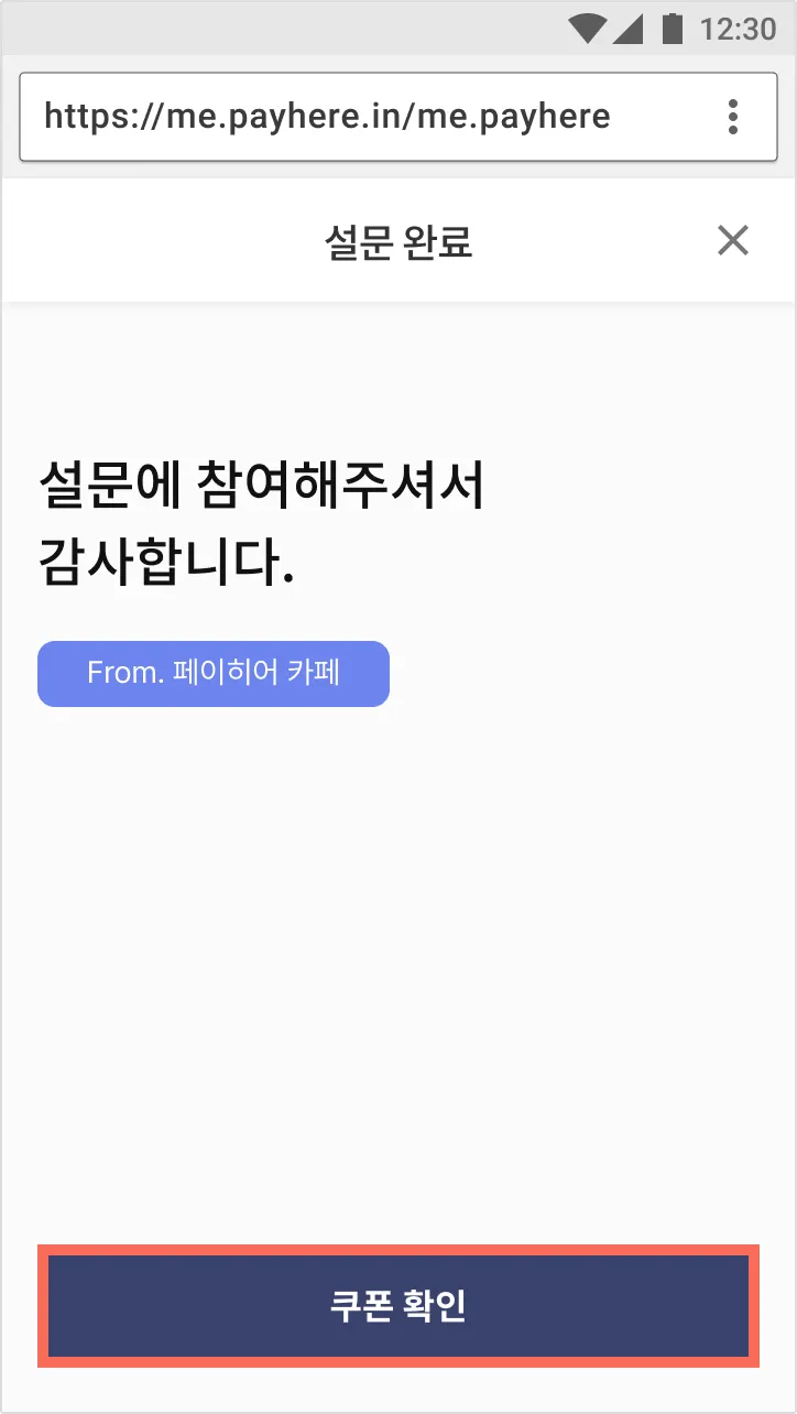 4) 모든 문항에 응답한 후 [쿠폰 확인]을 누르면 지급된 쿠폰을 확인할 수 있어요.