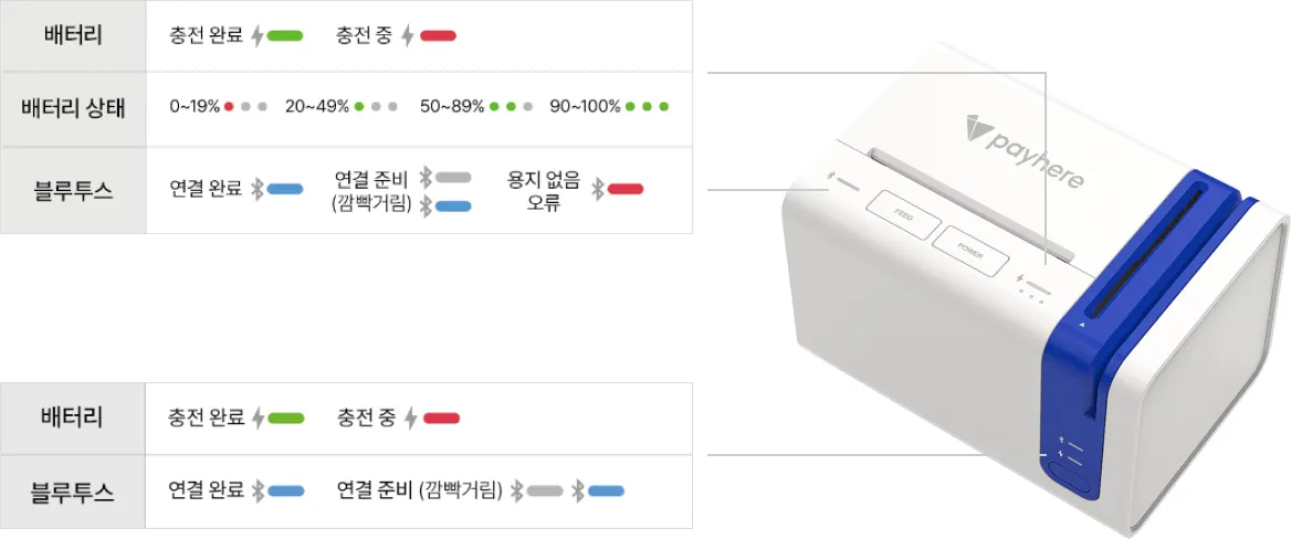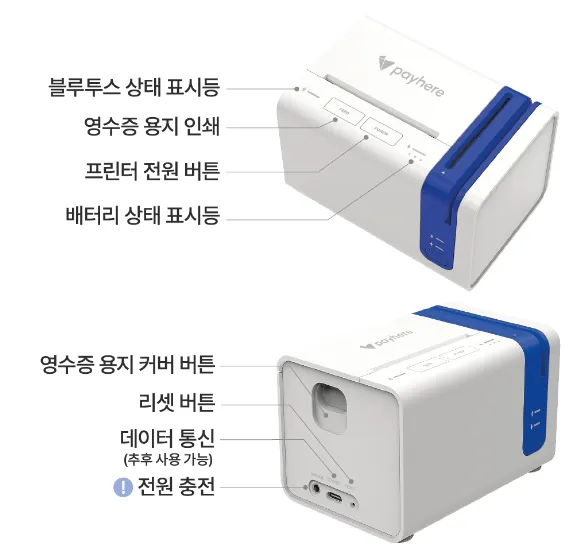 프린터는 동봉된 전원선으로 충전이 가능해요.