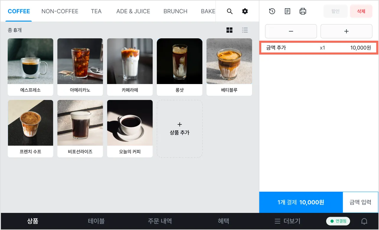 ‘금액 추가’는 주문 내역과 주문서에 나타나지 않아요.