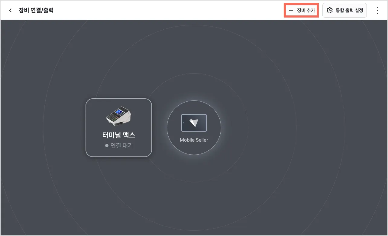 1) 페이히어 셀러 내 [더보기] 탭에서 [장비 연결/출력]을 눌러주세요.