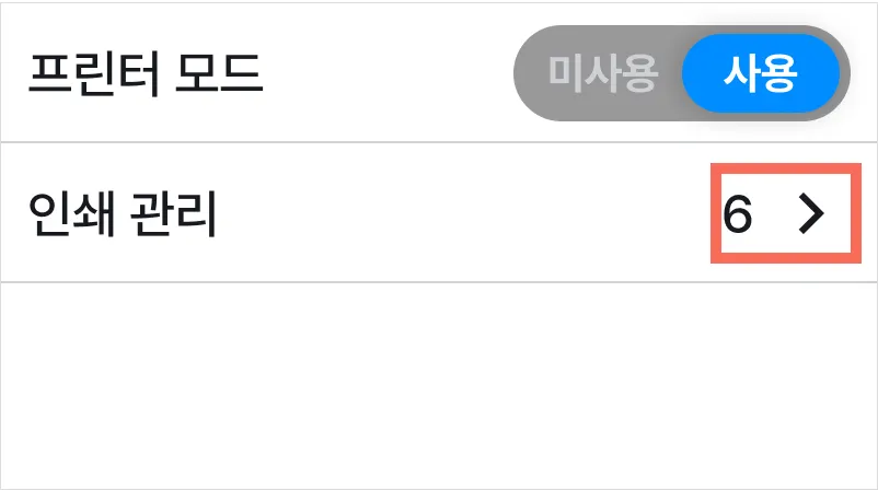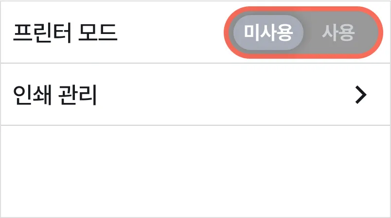 프린터 모드는 단말기 모드에서 제공하는 기능(결제 포함)을 이용할 수 없어요.
