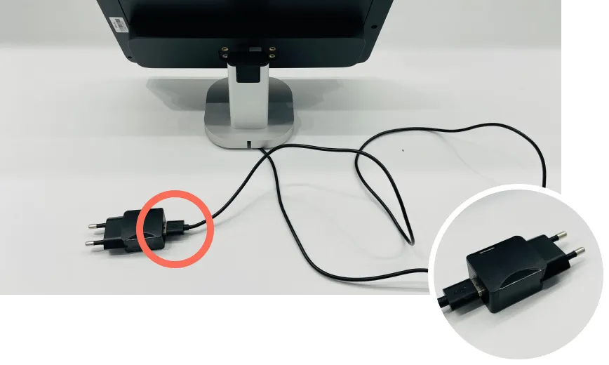 9) 거치대 뒤로 나와있는 케이블 선을 충전 어댑터와 연결해 주세요.