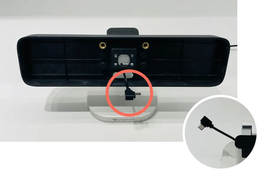 1) 거치대 내부에 동봉된 케이블을 후면 커버 구멍으로 통과시켜주세요.