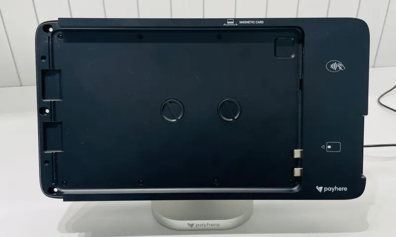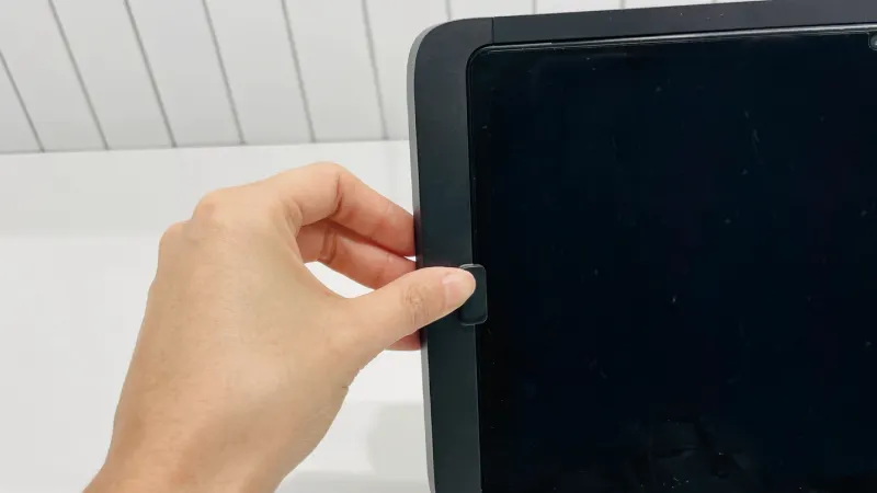 6) 오른쪽 하단 연결 단자에 맞춰 태블릿을 끼워주세요.
