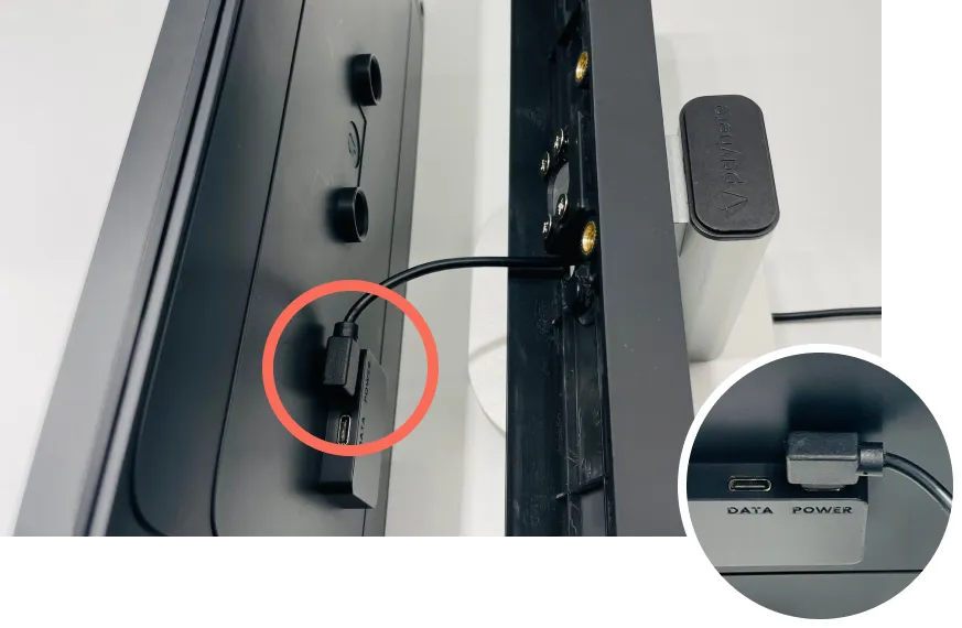 3) 후면 커버로 통과시킨 케이블을 태블릿 커버 뒷면 ‘POWER 포트’에 꽂아주세요.