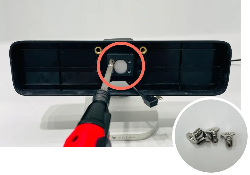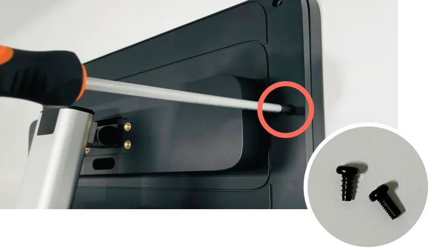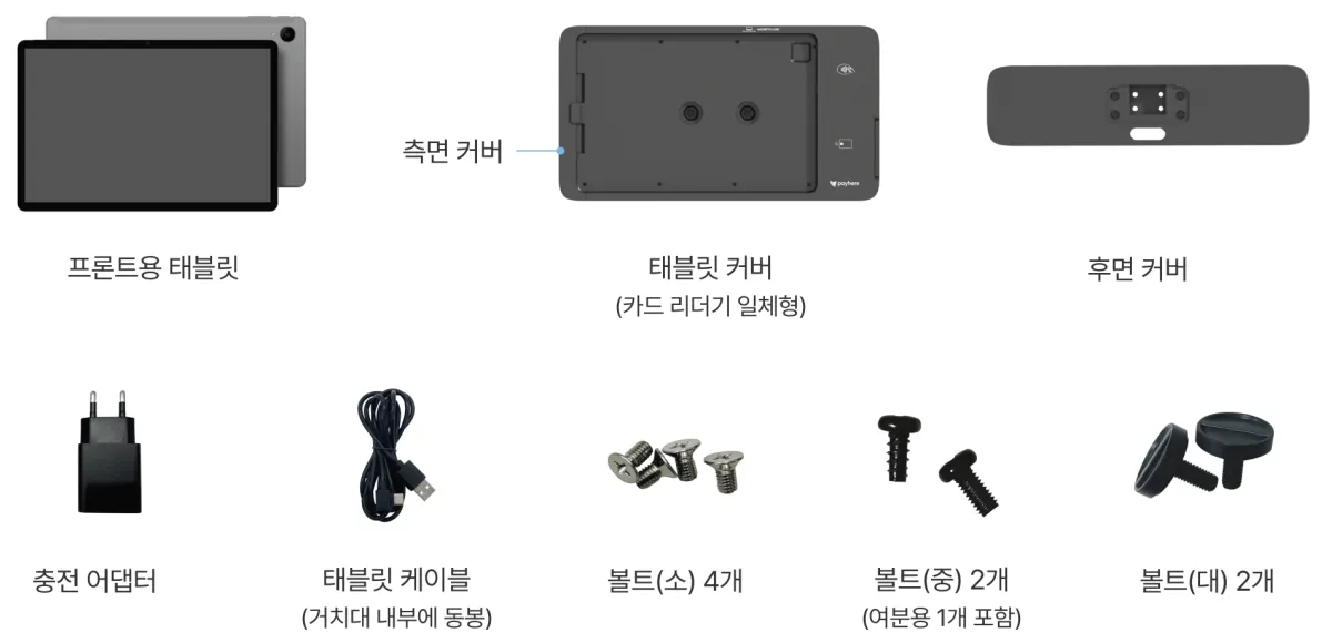 4) 케이블을 연결한 상태에서 태블릿 커버와 후면 커버 홈을 맞추고, 볼트(대) 2개로 가운데를 고정해 주세요.
