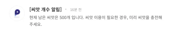 3) 보유 씨앗 개수가 1,000개 / 500개 / 300개 / 100개 / 0개 이하가 되면 잔여 개수가 푸시 알림으로 전송됩니다.