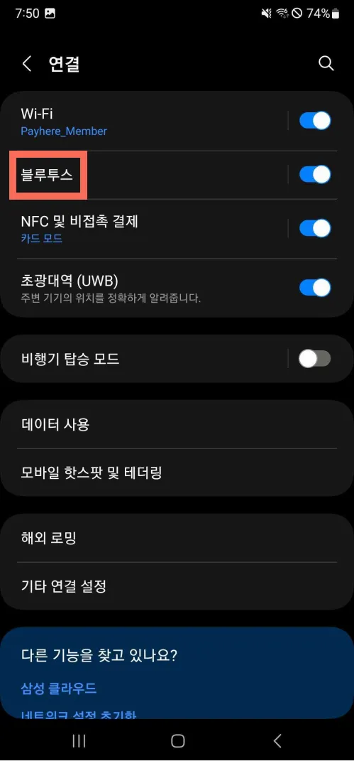 1) 태블릿 또는 휴대폰 [설정]에서 [연결] → [블루투스(Bluetooth)]를 눌러주세요.