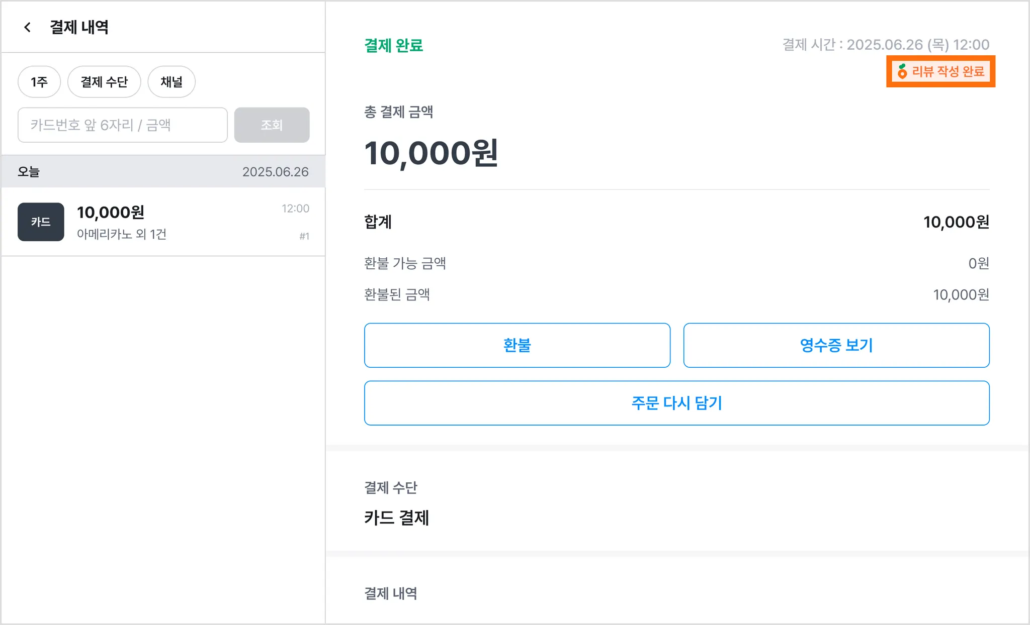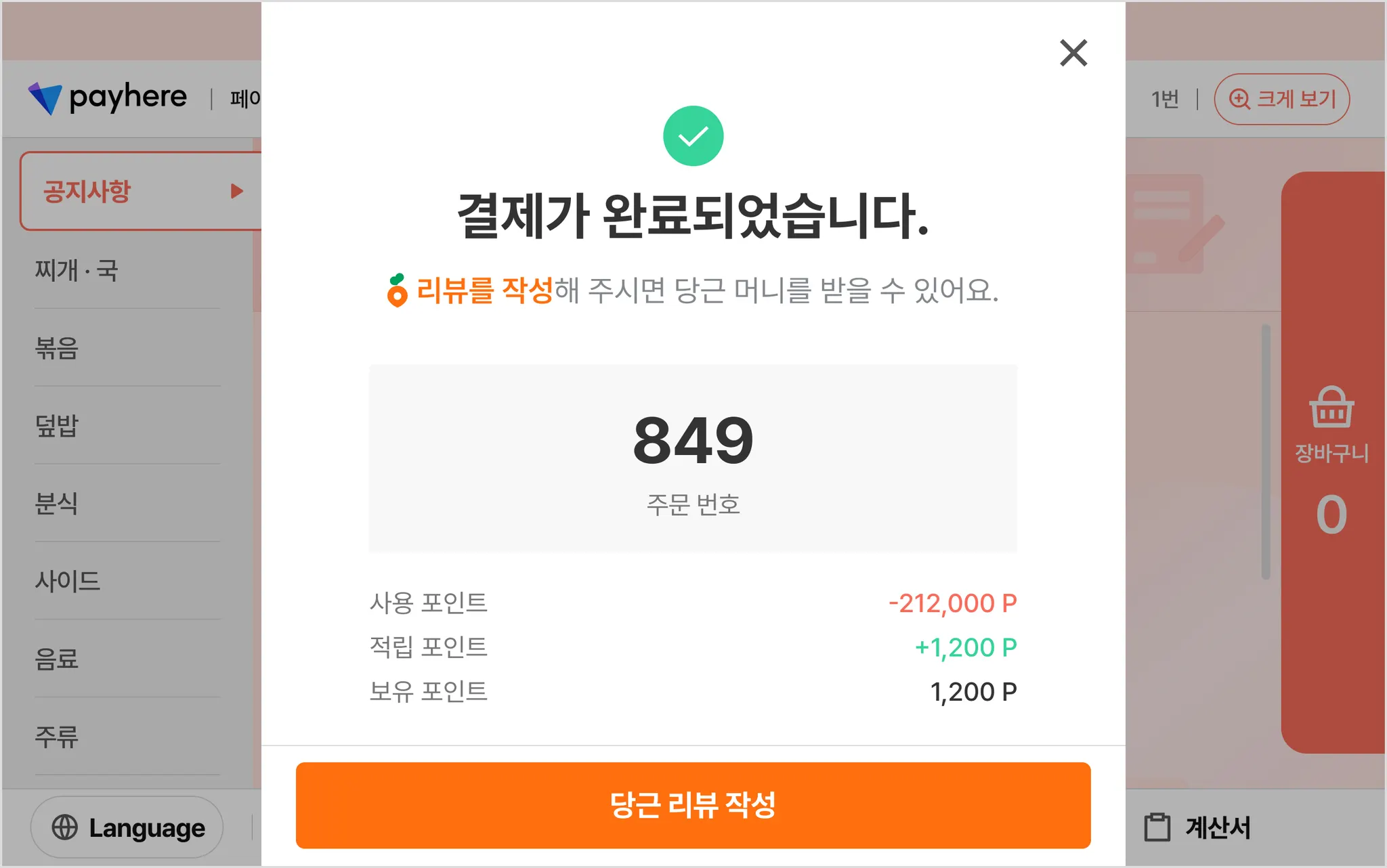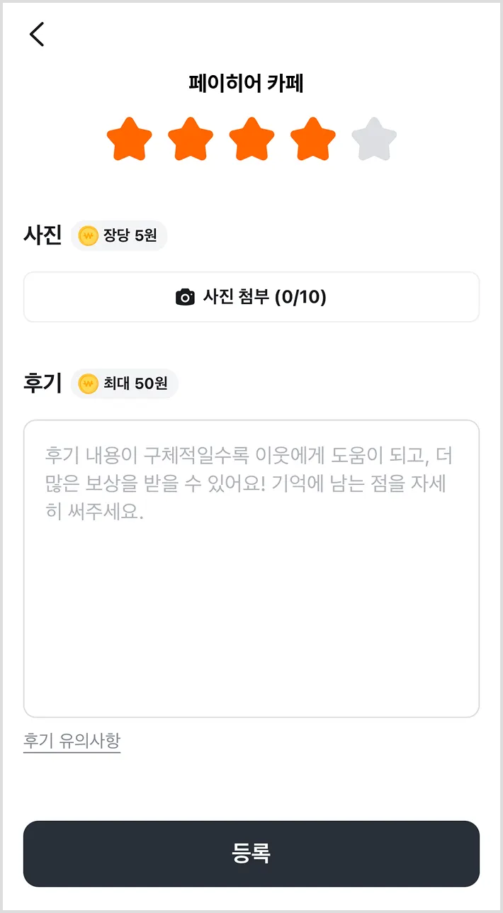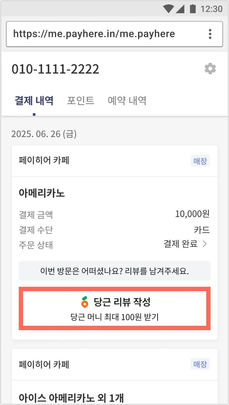 4) 리뷰 작성 여부는 페이히어 셀러 [결제 내역] 또는 당근에서 확인할 수 있어요.