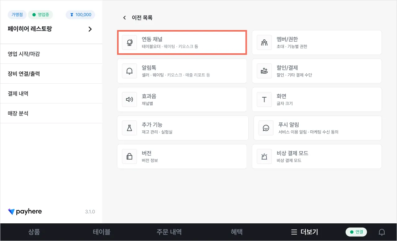 2. 테이블 오더 : 연동 장소 변경・연동 해제하기