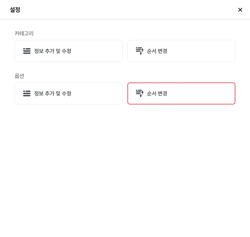 설정] 버튼을 누르고 [옵션-순서 변경]을 선택해주세요.