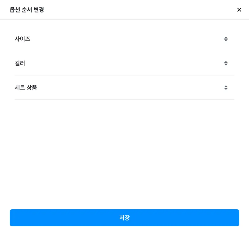 옵션 상품의 옵션값이 변경된 순서에 맞춰 정렬됩니다.