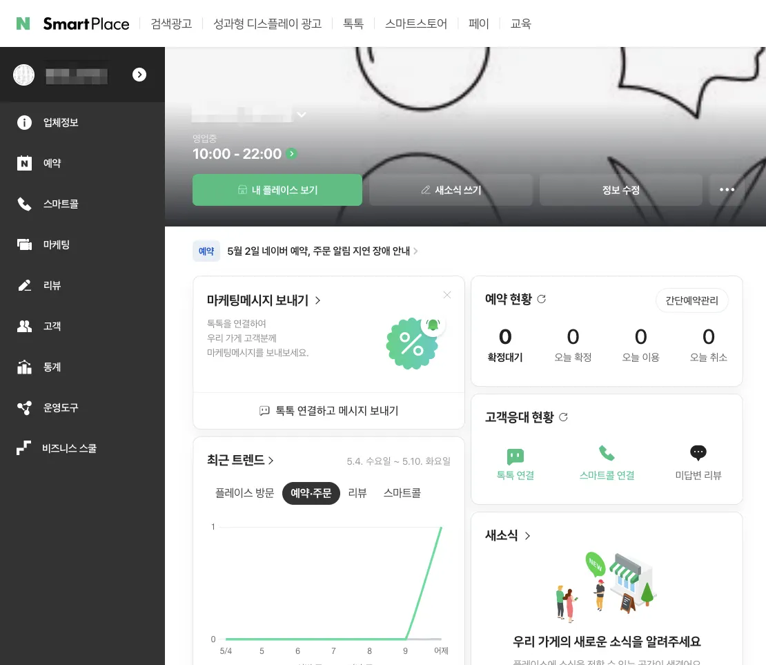 아직 네이버 예약을 사용하지 않고 계시다면, 네이버 스마트 플레이스에서 예약 서비스를 등록해 주세요.