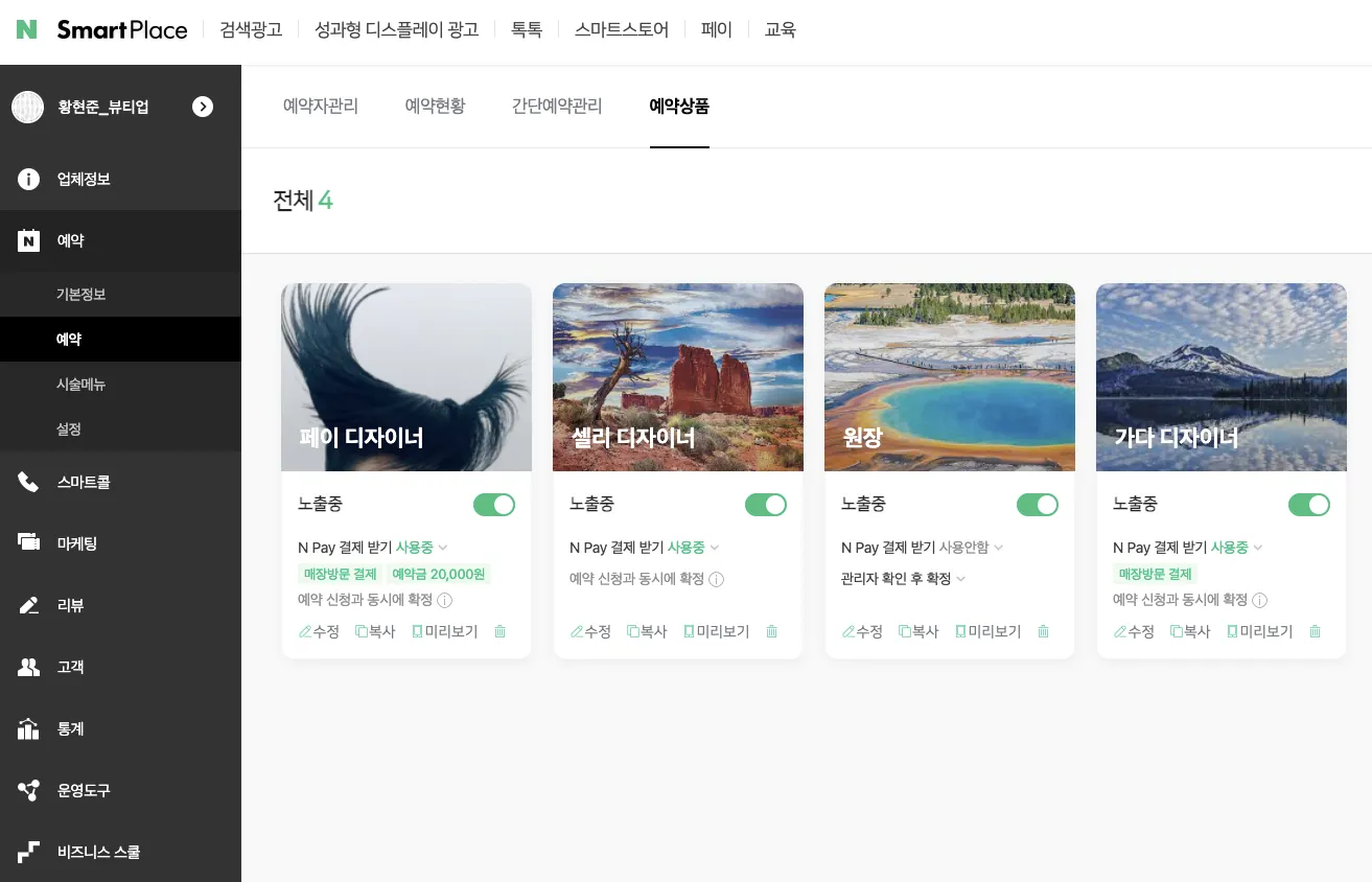 연동이 완료된 예약 상품(디자이너)만 네이버 예약에 노출됩니다.