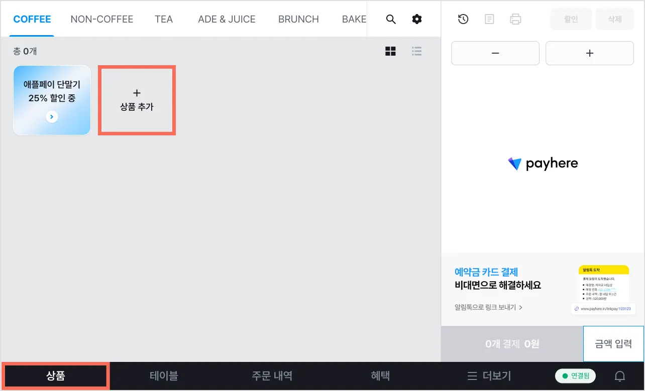 1) [상품] 탭에서 [+ 상품 추가]를 눌러주세요.