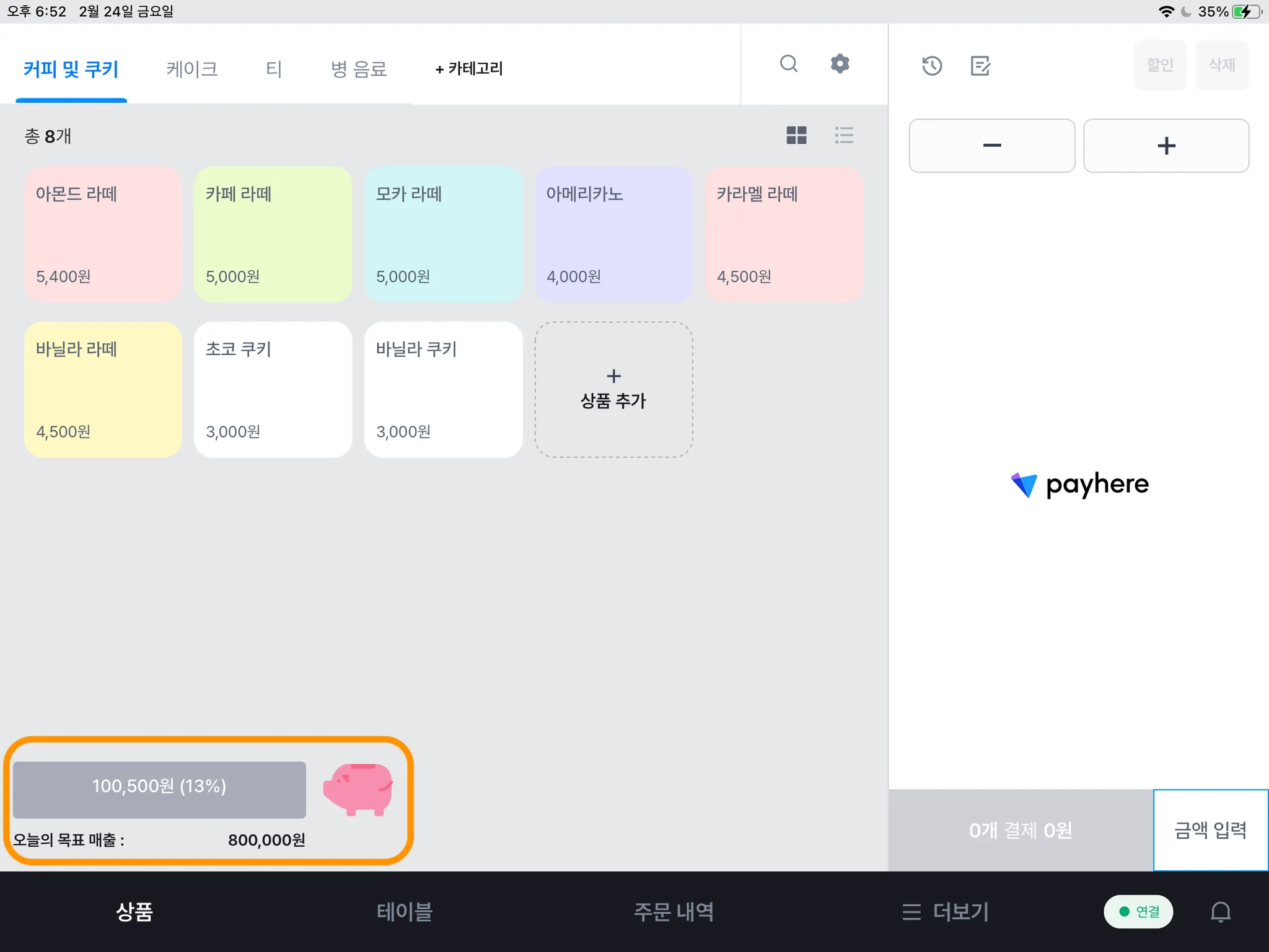 영업 마감 시 0원으로 변경됩니다. 목표 금액을 다시 0원으로 설정하면 위젯이 사라집니다.