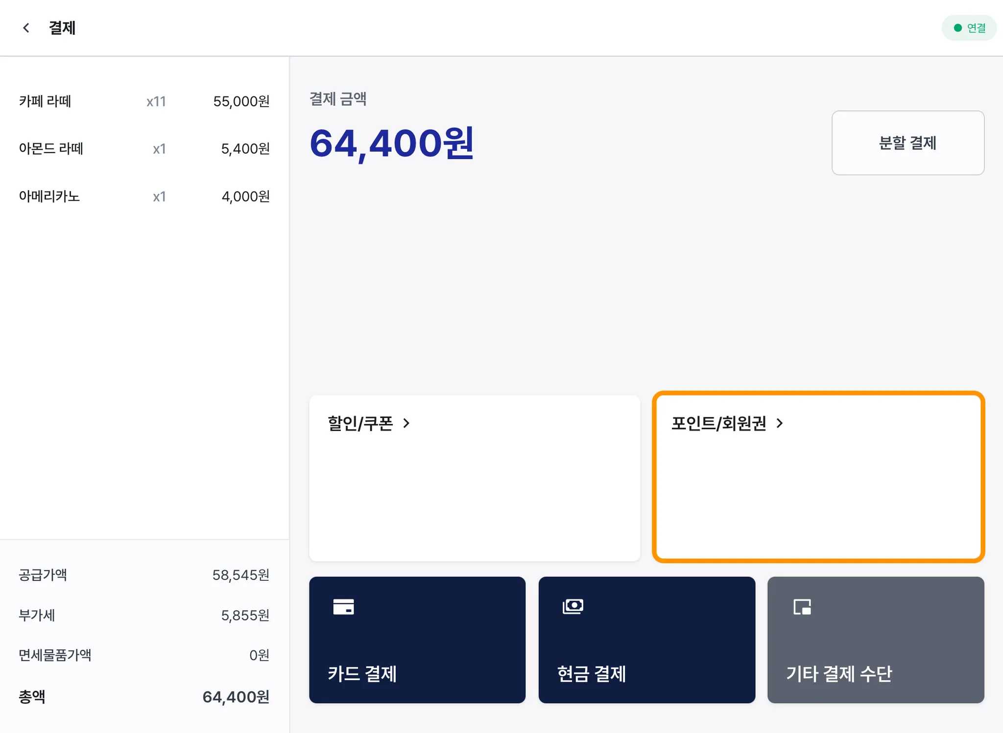 또한, 할인, 포인트 적립, 포인트 사용과 동시에 적용할 수 있습니다.