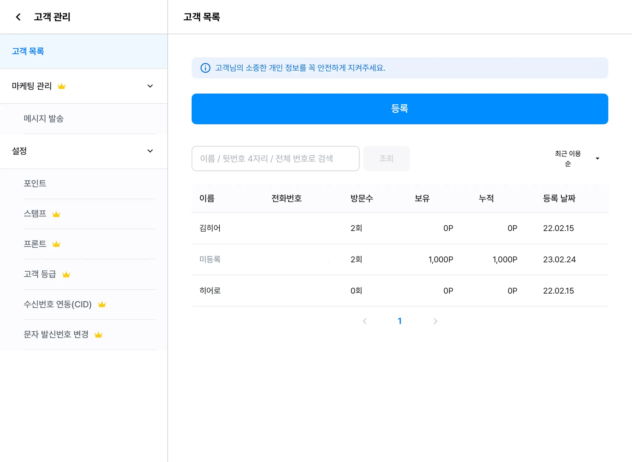 [더보기] → [고객 관리] → [고객 목록] → 고객 전화번호를 눌러주세요.