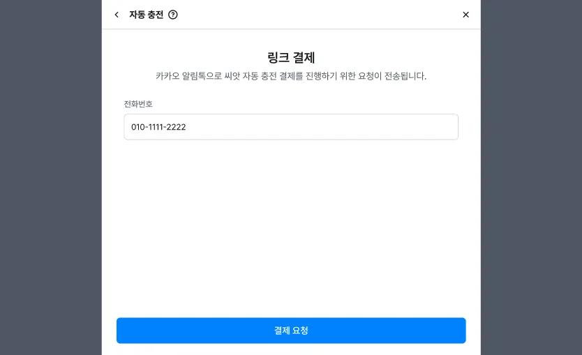 2) 결제 카드 등록을 위해 링크를 받을 전화번호를 입력한 후 [결제 요청] 버튼을 눌러주세요.