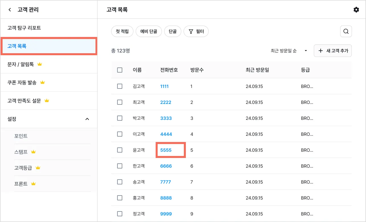 판매자 유형에 따라 화면 하단에서 [고객 관리] 탭으로 확인할 수 있어요.