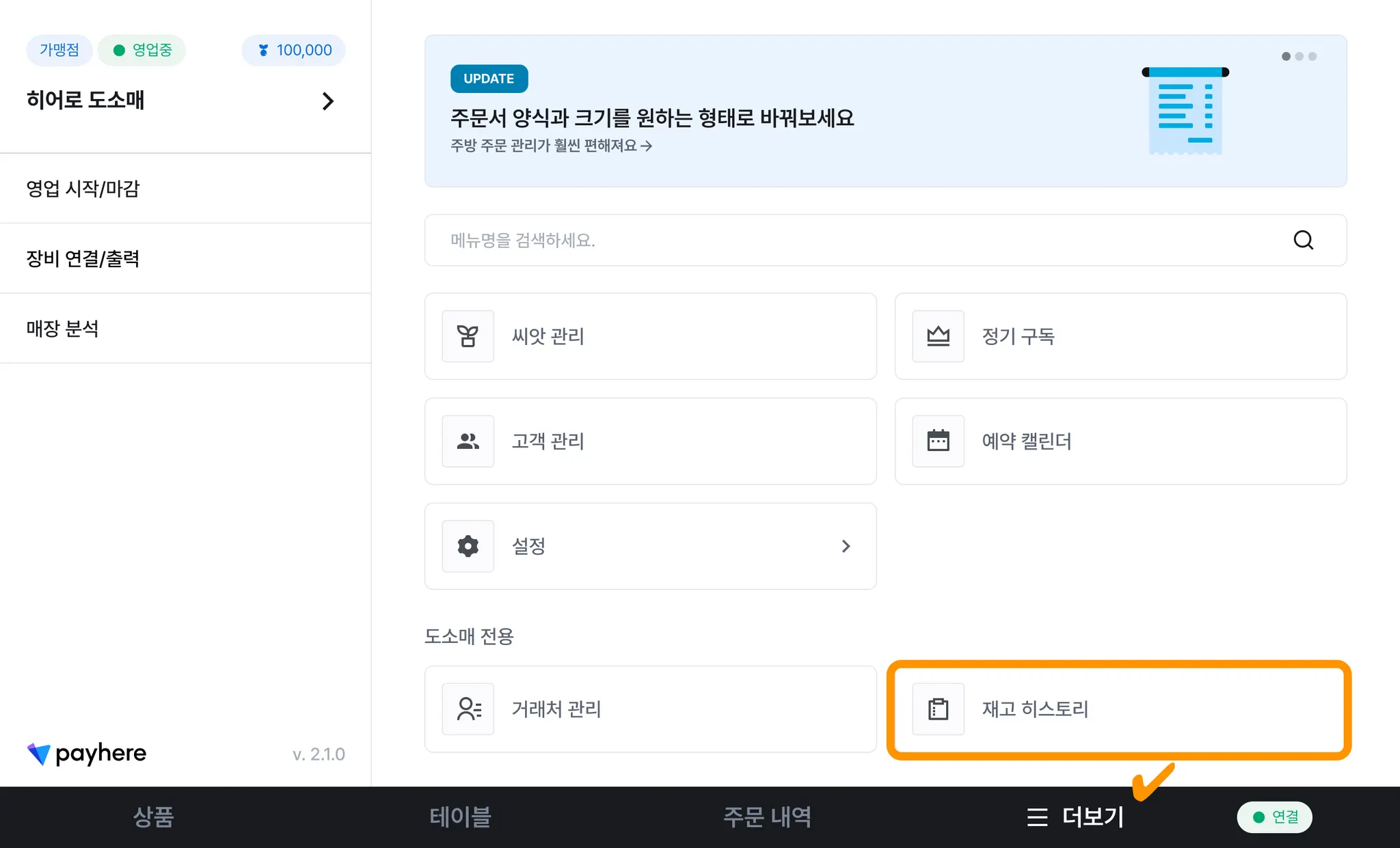 페이히어 재고관리 모바일 앱에서도 [재고 히스토리] 기능을 사용할 수 있습니다.