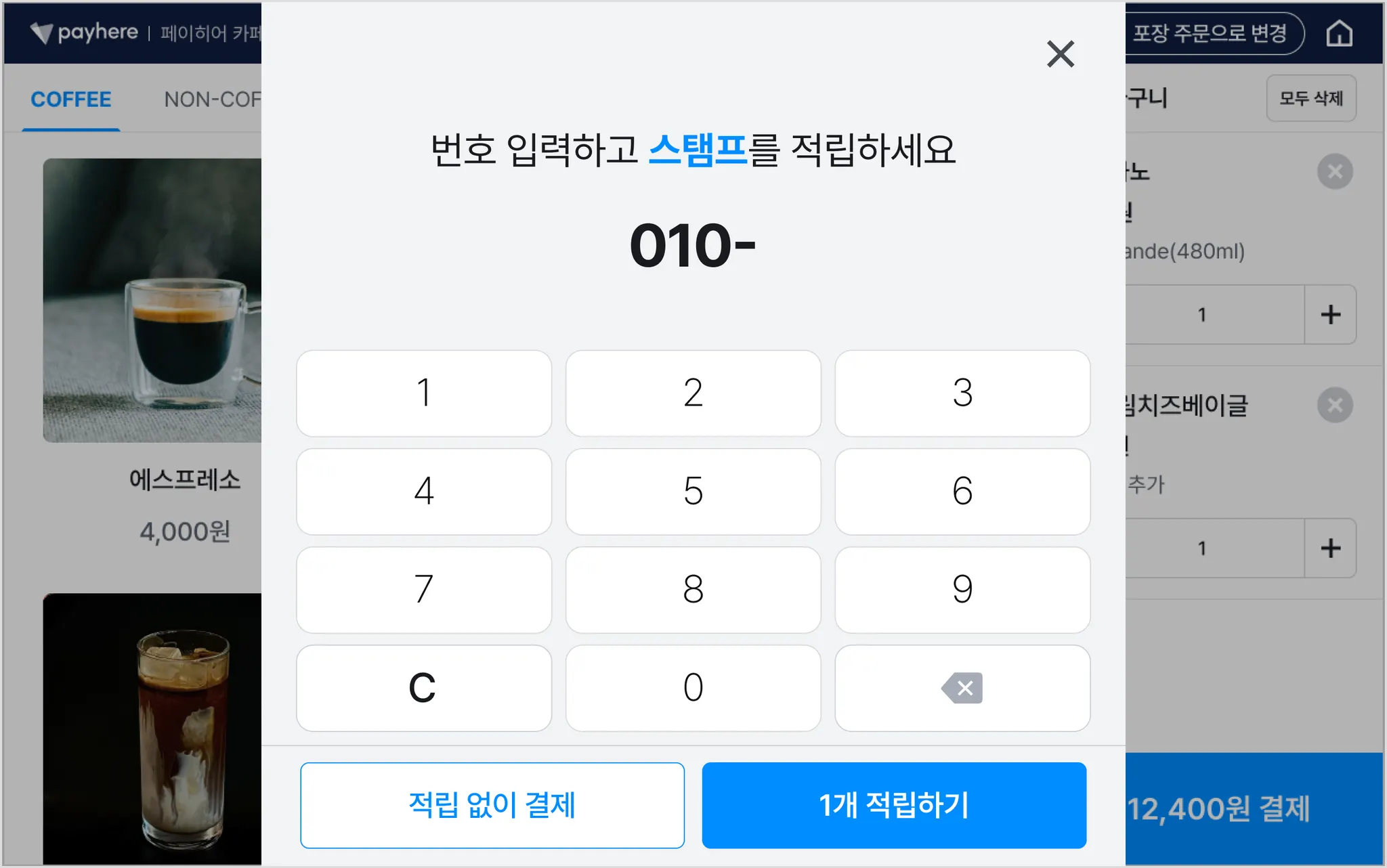 4) 고객은 주문 과정에서 휴대폰 번호를 입력하여 포인트 또는 스탬프를 적립할 수 있어요.