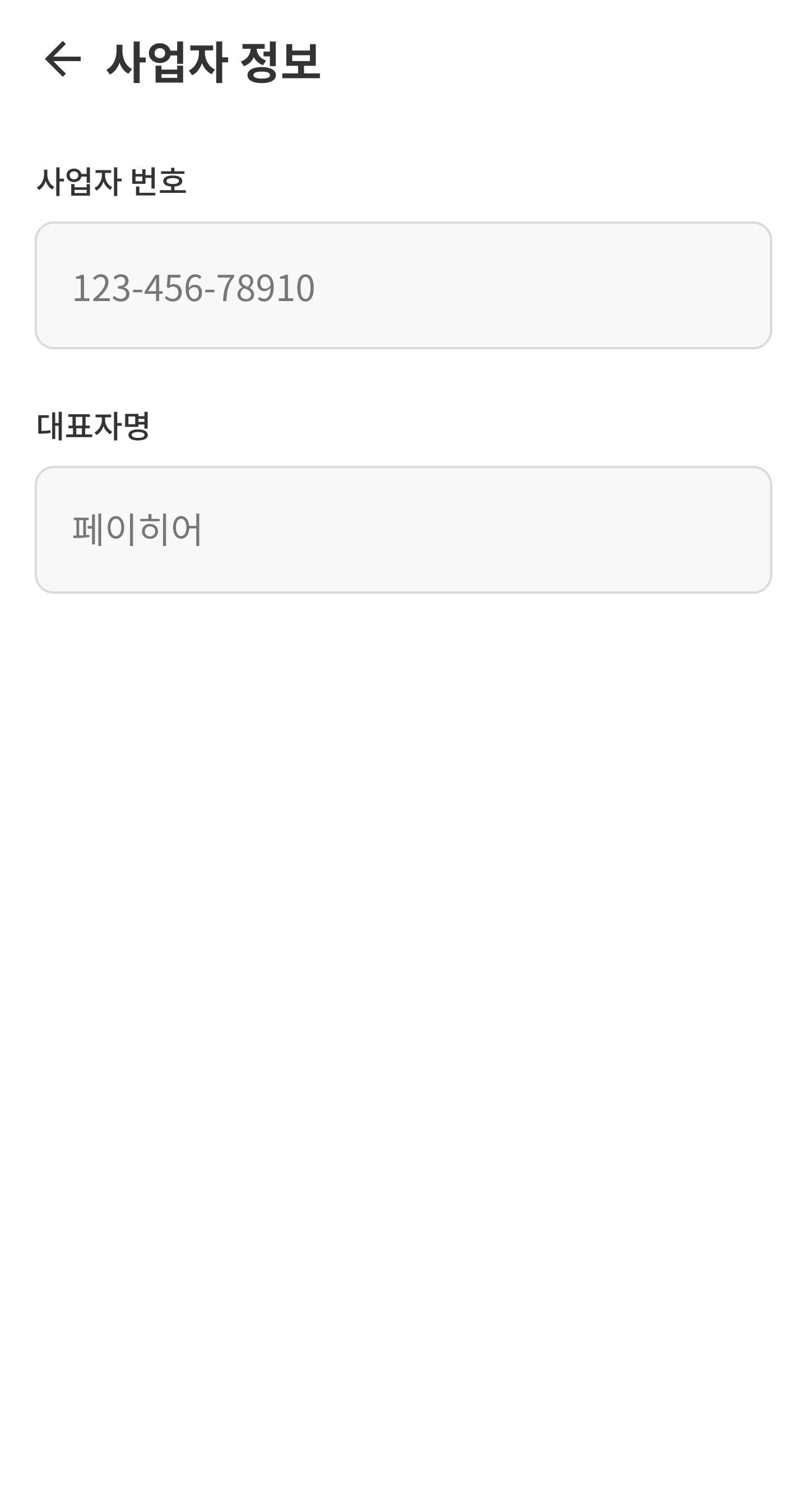 사업자 번호와 대표자명을 확인할 수 있습니다.