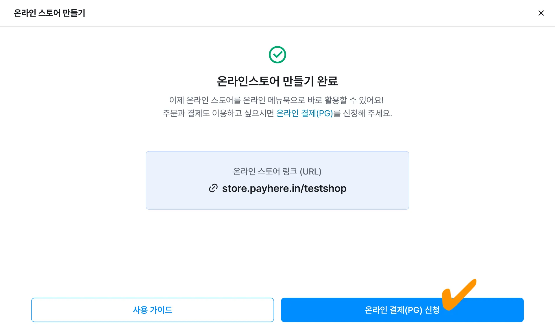스토어 아이디는 PG 가입 후에는 변경할 수 없습니다.