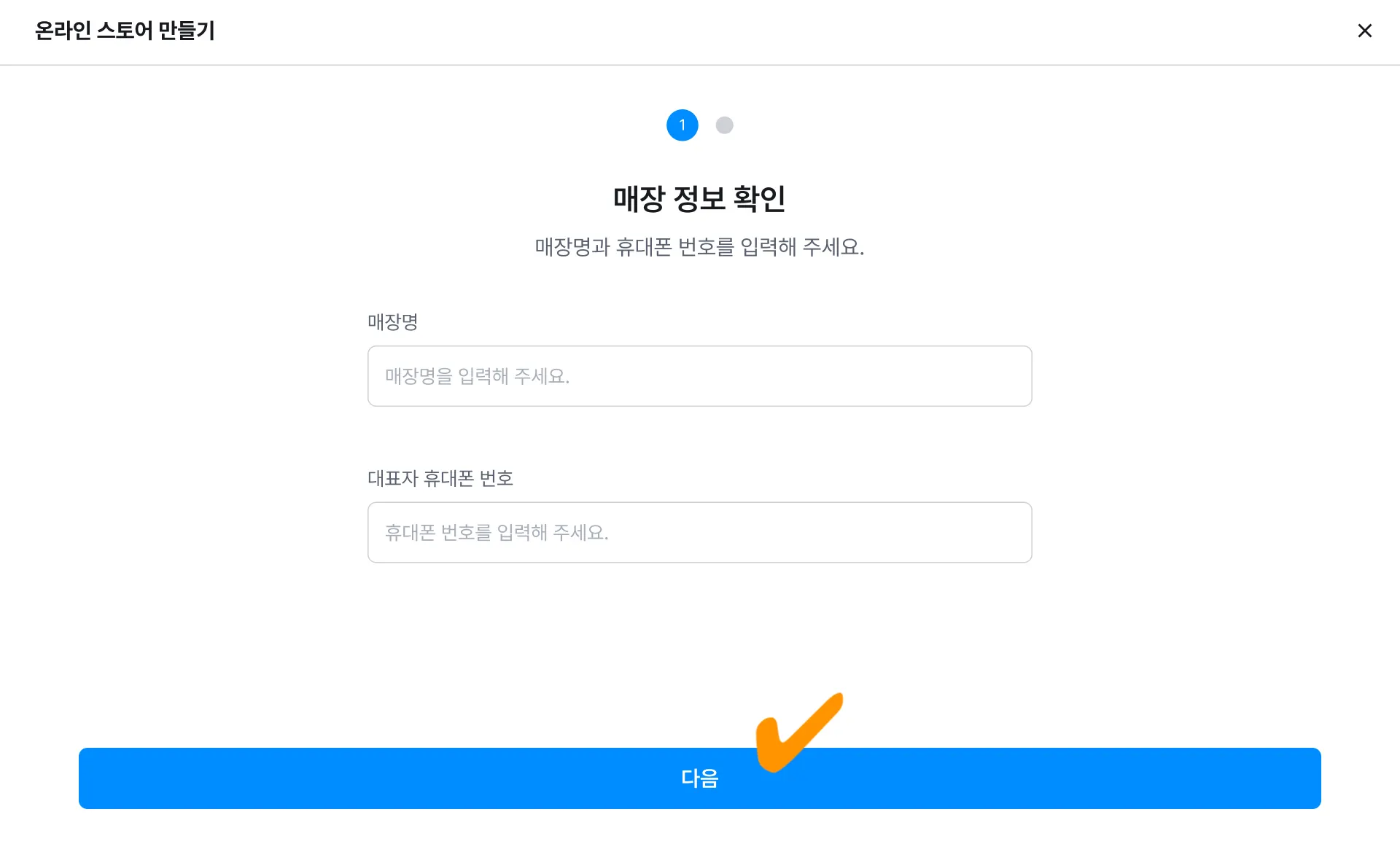 매장명과 대표자 휴대폰 번호를 입력해주세요.