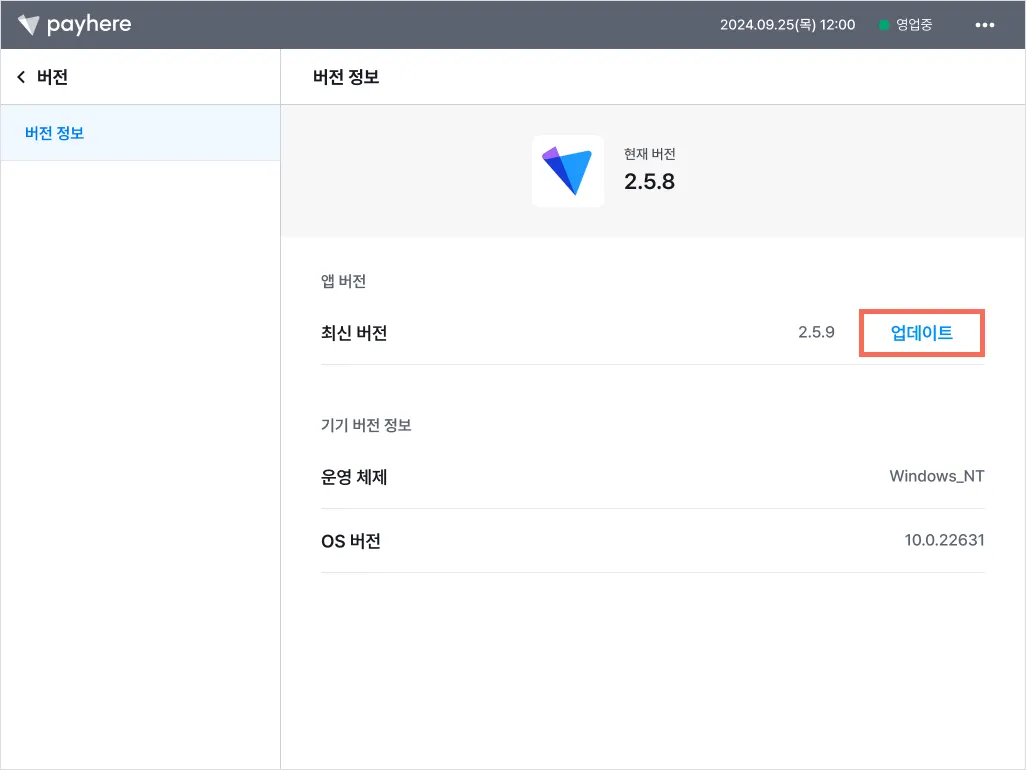 3) [업데이트]를 눌러 최신 버전으로 업데이트해 주세요.