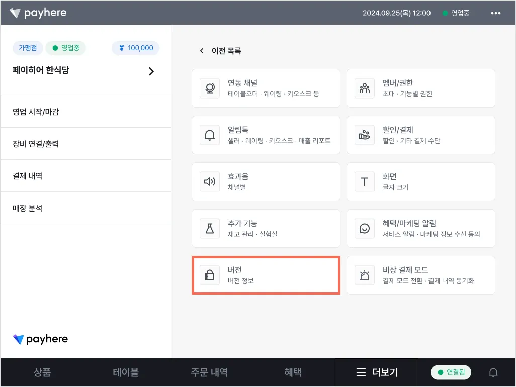 1) [더보기] 탭 → 매장명 옆 [>]를 눌러주세요.