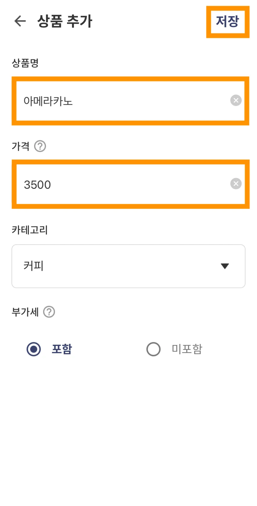 2) 상품명과 가격을 입력한 후 [저장]을 눌러주세요.