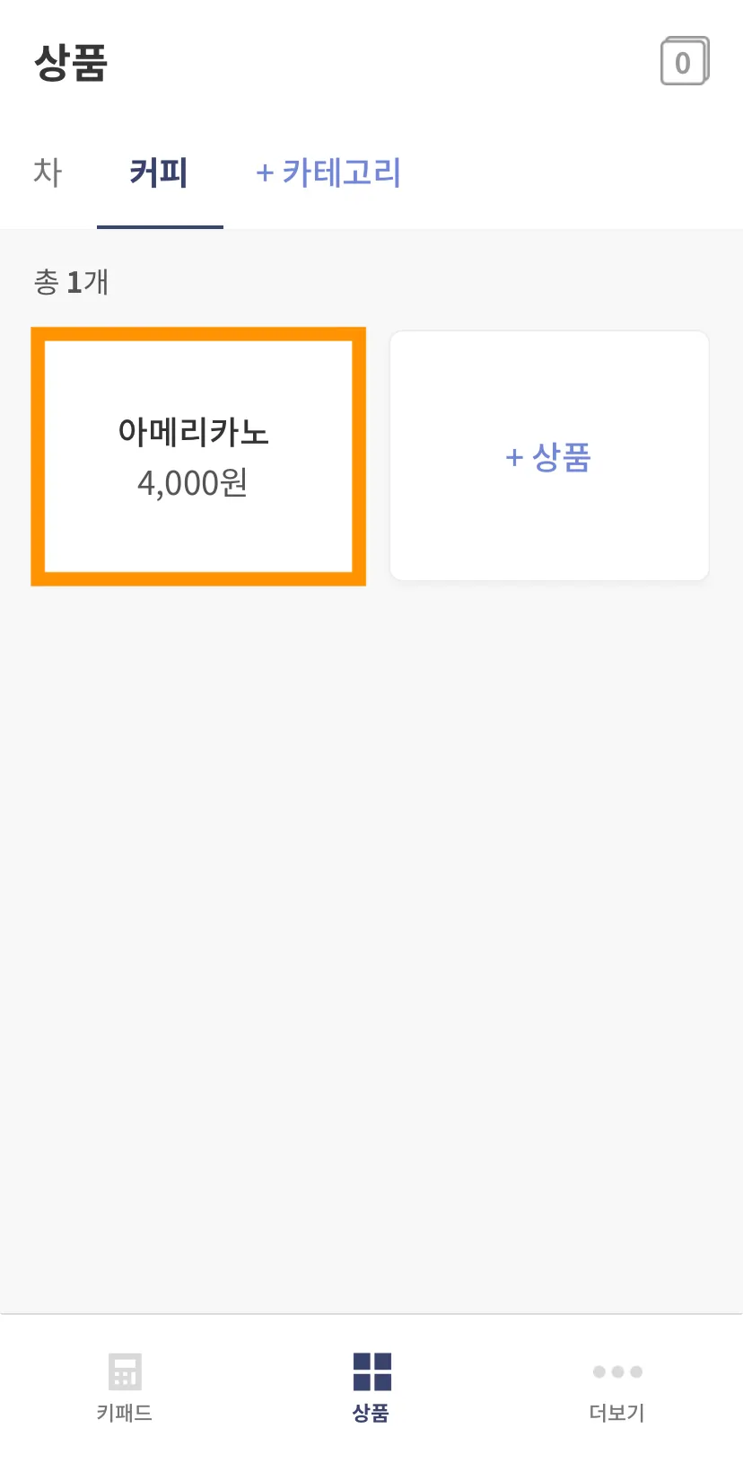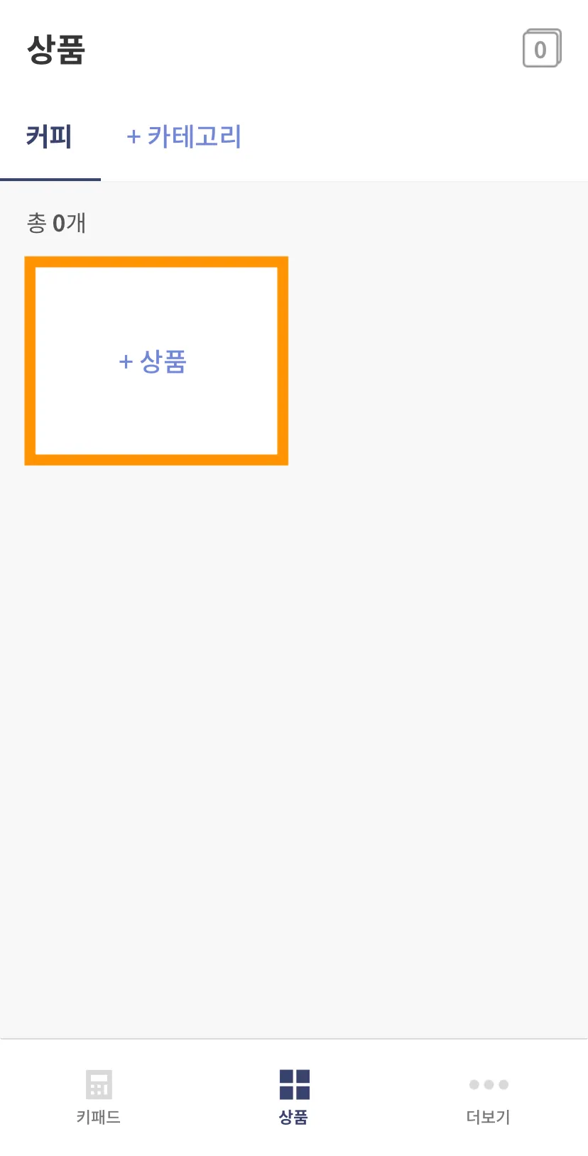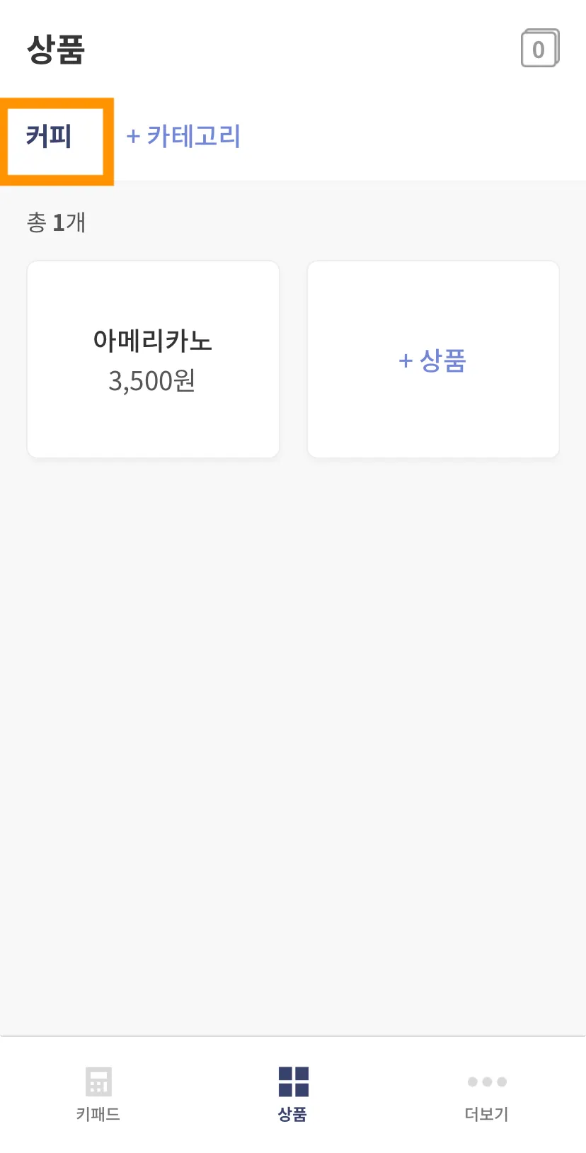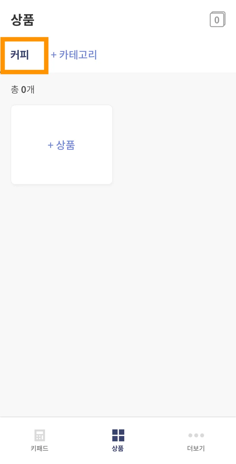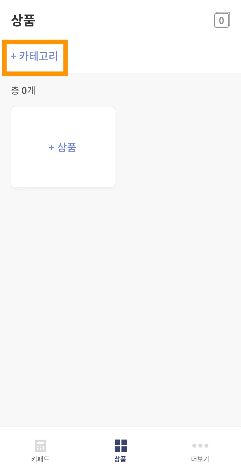 1) 상품 탭에 있는 [+카테고리] 버튼을 눌러주세요.