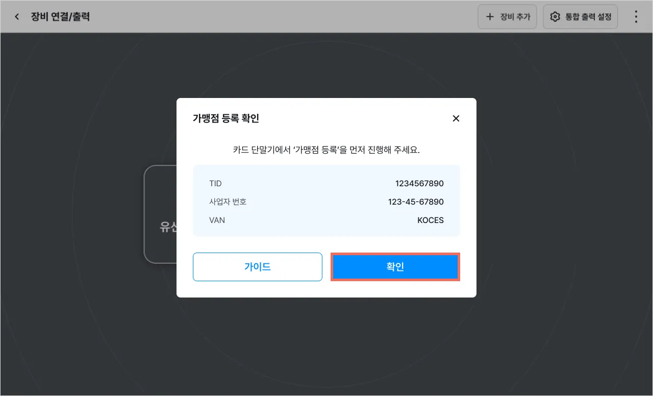 2) 연결 대기 상태인 [유선 카드 단말기]를 누른 다음, [확인]을 눌러주세요.