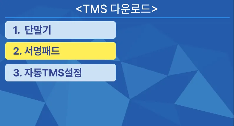 단말기 키패드를 이용하여 TMS 다운로드를 완료해 주세요.