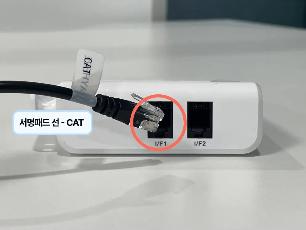 서명패드 : 선 양쪽을 단말기와 서명패드 뒷면에 연결해 주세요.