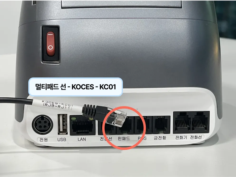 ① KOCES-KC01 → 단말기 뒷면 핀패드 포트